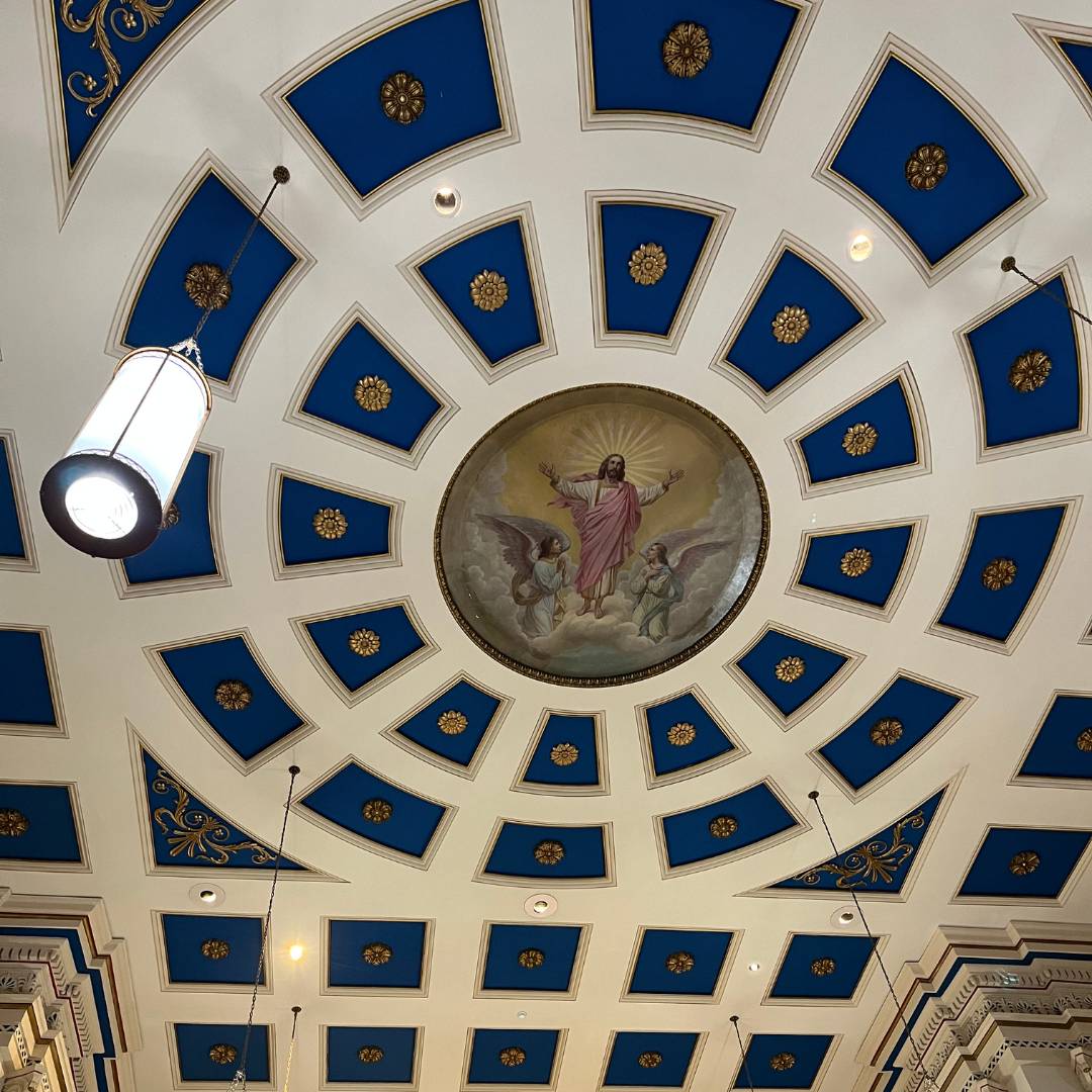 Today's random photo: Alli had to drag me along on a candlelight tour of churches in our hometown of Frederick, Maryland, but I ended up really enjoying it. This is the ceiling of a Catholic church. Hot take: We need more beautiful architecture and fewer Amazon-box, strip-mall buildings.